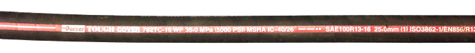 Manufacturer designationIn this case, the hose's manufacturer is Parker. |